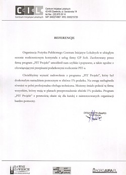 Poniżej prezentujemy wybrane referencje, opinie oraz podziękowania od naszych partnerów oraz użytkowników programu PIT Projekt:
